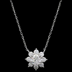 Snowflower 2.3ct Moissanite Pendant Necklace – Round Cut Floral Design