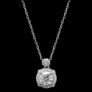 Radiant Crown 1.8ct Moissanite Pendant Necklace – Round Cut Halo Design