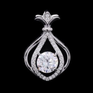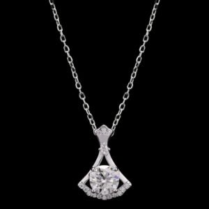 Lustrous Fan 1.64ct Moissanite Pendant Necklace – Round Cut Art Deco Design
