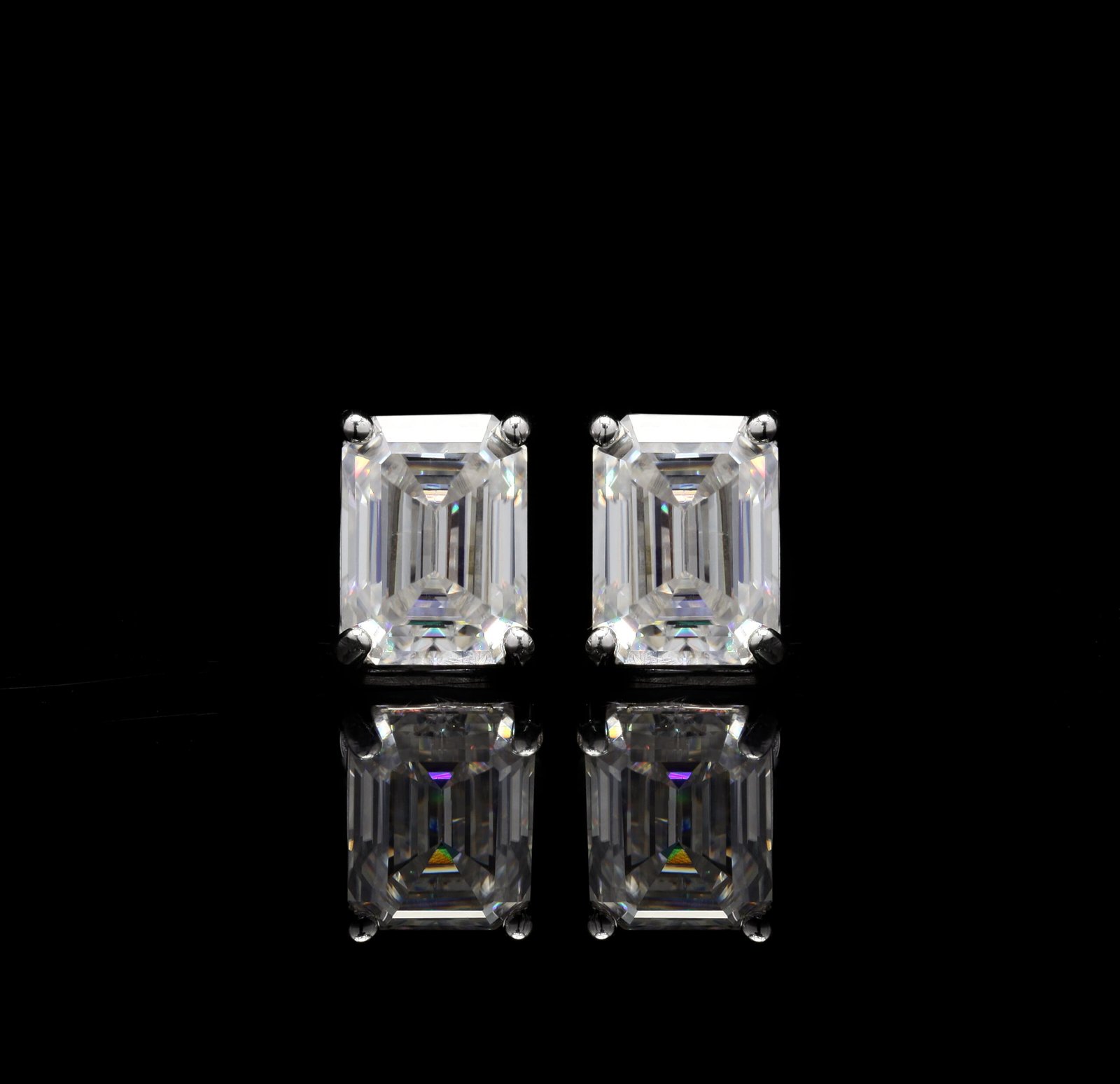 - Stone Cut: Emerald-cut moissanites