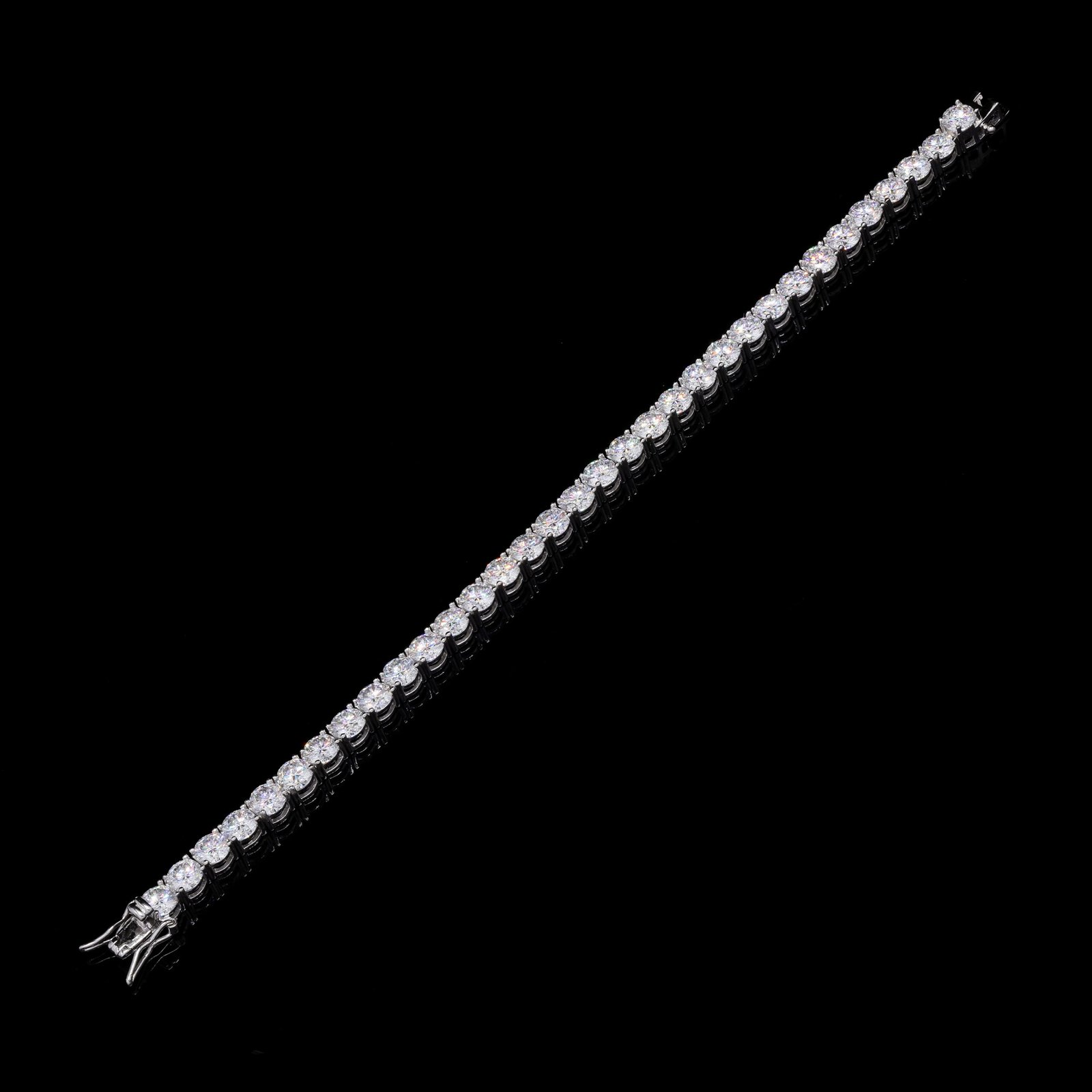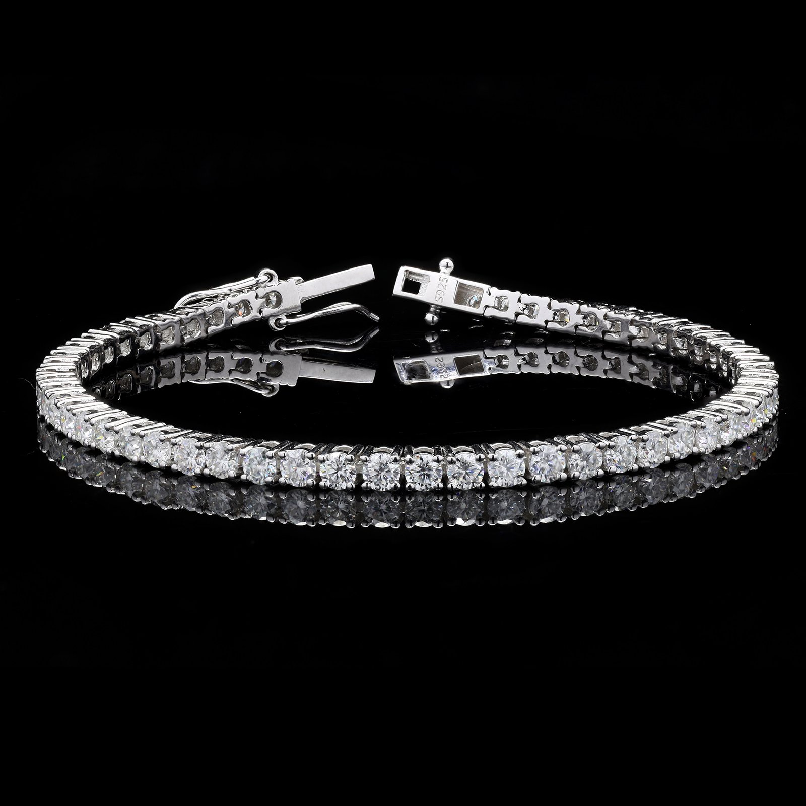 This breathtaking bracelet features 12.60ct of perfectly matched round-cut moissanites, each meticulously set in a sleek white gold–plated prong setting for maximum sparkle and durability. Its classic tennis design creates a continuous line of fire and brilliance, reflecting elegance from every angle.